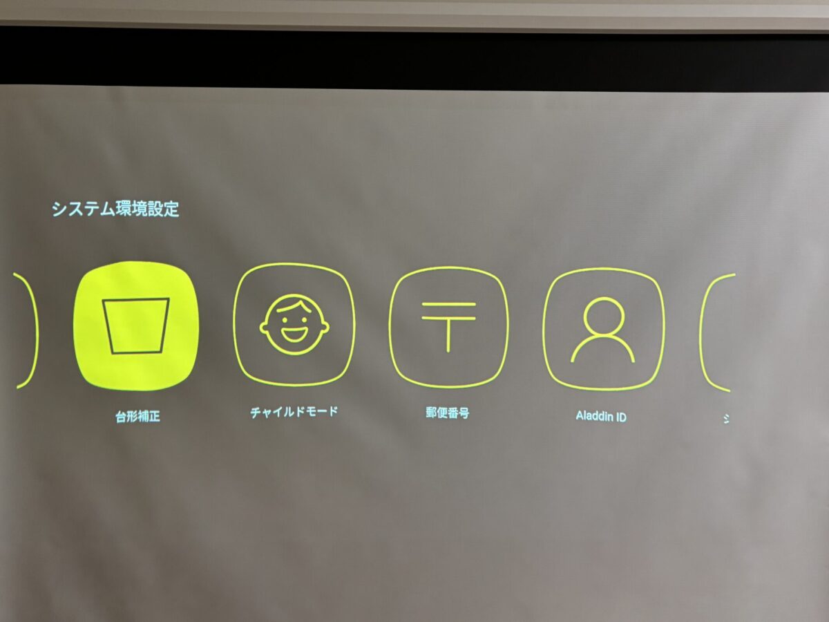 Aladdin X2Plusは、台形補正機能という機能を使って斜め方向への投影が可能です。