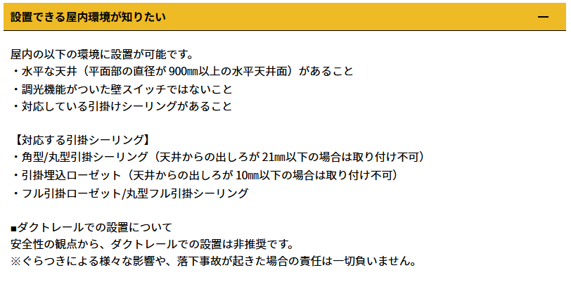 また、対応している引掛けシーリングがあることも設置可能条件となります。