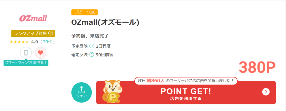私は、モッピー経由で「OZmall(オズモール)」でお店を予約しました!